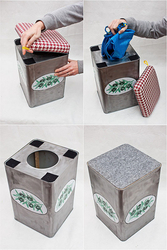 …und statt auf dem Müll zu landen, haben wir sie in einen Hocker verwandelt.